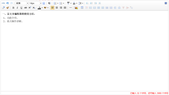 此部分將講解系統(tǒng)用到的富文本編輯器的使用方法及注意事項(xiàng)。本系統(tǒng)中使用到的富文本編輯器如圖所示:
