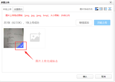 (4) 點(diǎn)擊“開始上傳”按鈕,圖片將上傳到系統(tǒng)中,如下圖所示,表示圖片已上傳完成。