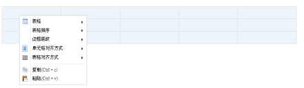 (3) 選中插入的表格后單擊鼠標(biāo)右鍵將彈出編輯表格的操作菜單??梢酝ㄟ^菜單中的操作選項(xiàng)對(duì)表格進(jìn)行合并、底色、排序、對(duì)齊、刪除等操作。