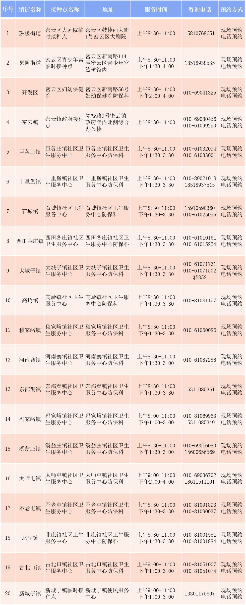 密云區(qū)新冠疫苗接種點信息公示(2022年6月17日生效)