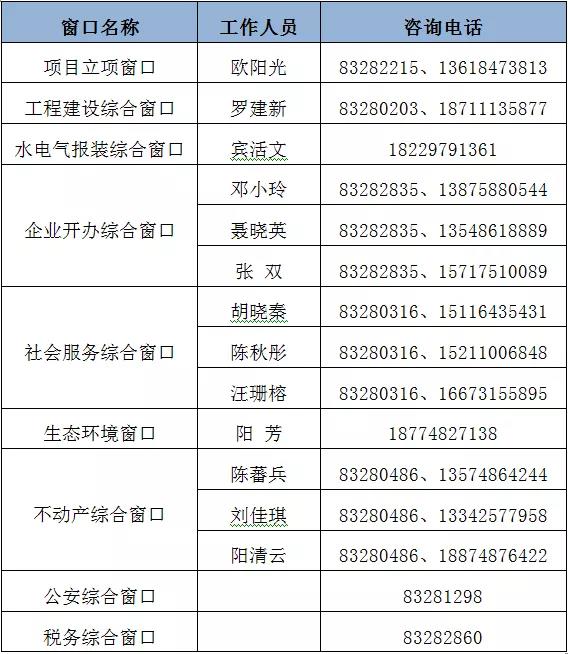 瀏陽經(jīng)濟技術(shù)開發(fā)區(qū)政務(wù)服務(wù)中心辦事大廳各窗口咨詢電話