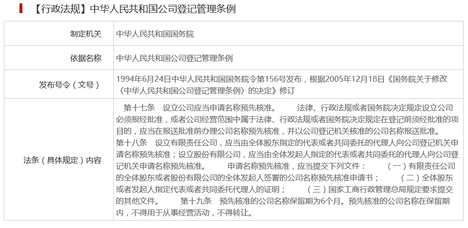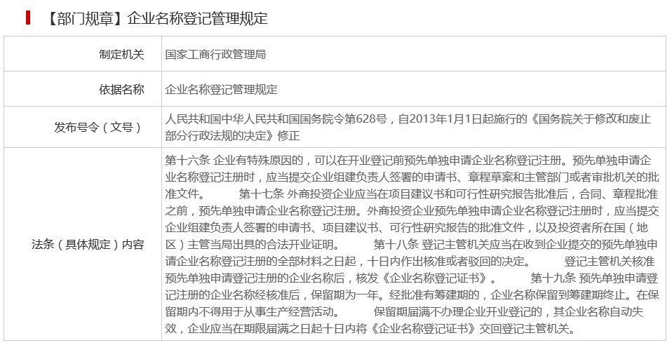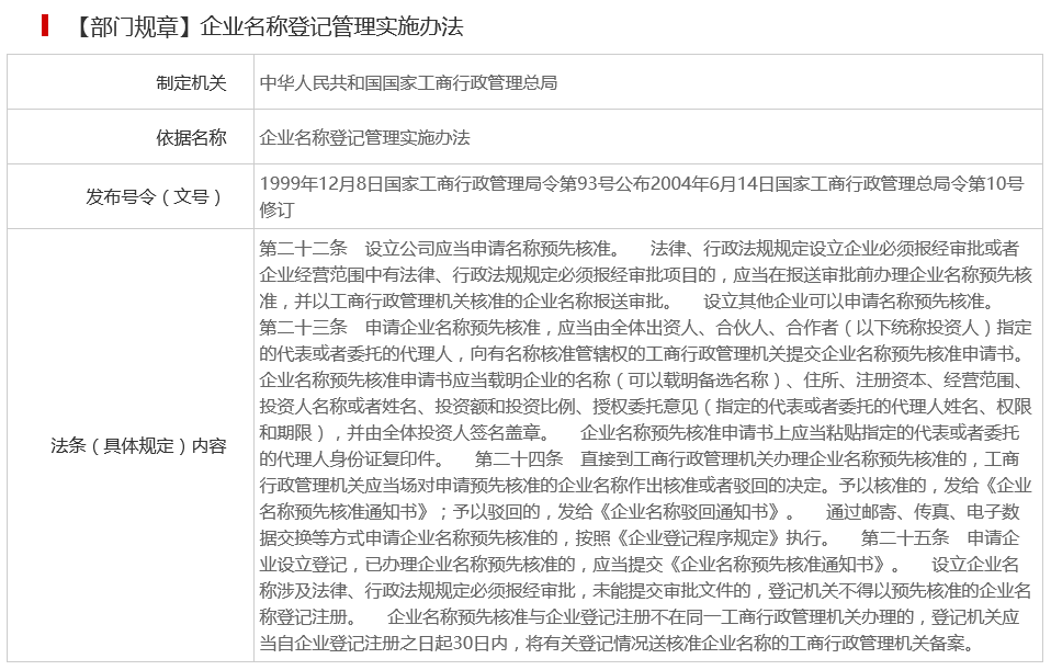 北京市企業(yè)名稱預(yù)先核準(zhǔn)設(shè)定依據(jù)