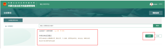 以“內(nèi)蒙古政務(wù)服務(wù)網(wǎng)”登錄,辦理主體設(shè)立申請事項(xiàng)為例,進(jìn)行操作說明。