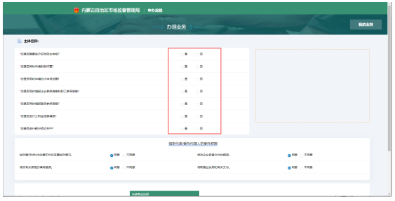 進(jìn)入申請事項(xiàng)填報頁面后,申請人需要完成“申請信息”、“業(yè)務(wù)材料”的填寫和上傳工作。