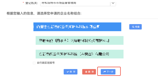 5、填寫完成后,點(diǎn)擊下一步(如名稱不可用,系統(tǒng)會進(jìn)行提示,修改后再次點(diǎn)擊下一步即可,也可以點(diǎn)擊「檢查」按鈕檢查名稱是否可用)