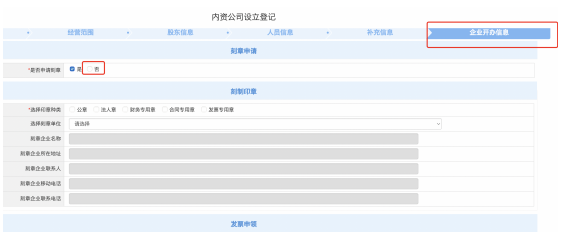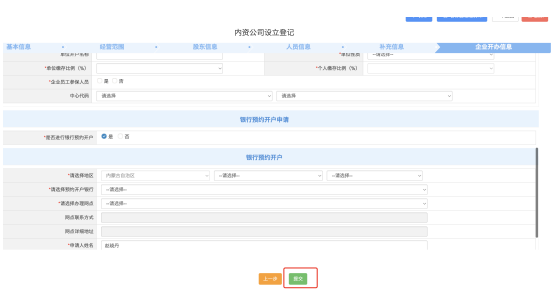 4、企業(yè)開辦信息是在申請名稱時選擇的聯(lián)辦業(yè)務(wù),如果此時部分內(nèi)容不想聯(lián)辦可以選擇“否”
