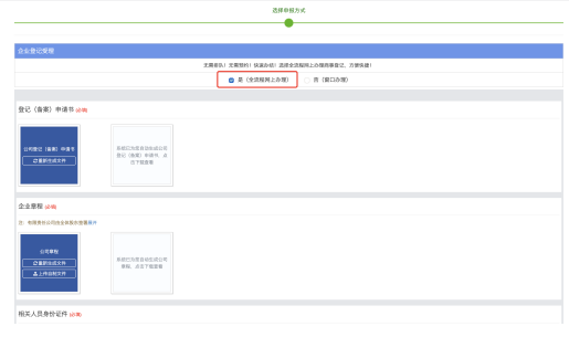 6、選擇申報方式,如選擇「全流程網(wǎng)上辦理」,需要將所需材料進(jìn)行上傳,通過移動申報app進(jìn)行簽字后才可完成提交