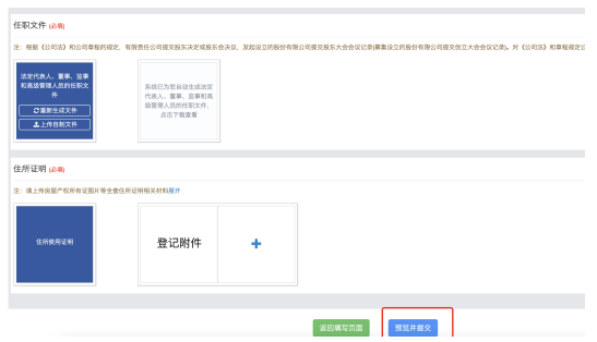 10、材料全部上傳確認(rèn)完成后點(diǎn)擊「提交并預(yù)覽」