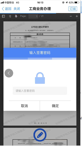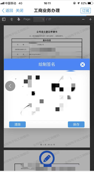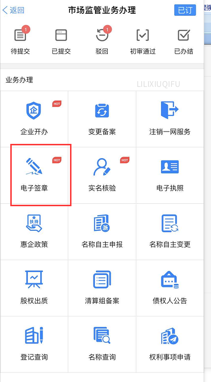 市場(chǎng)監(jiān)管業(yè)務(wù)辦理界面,點(diǎn)擊【電子簽章】,可查看到待簽名文件。