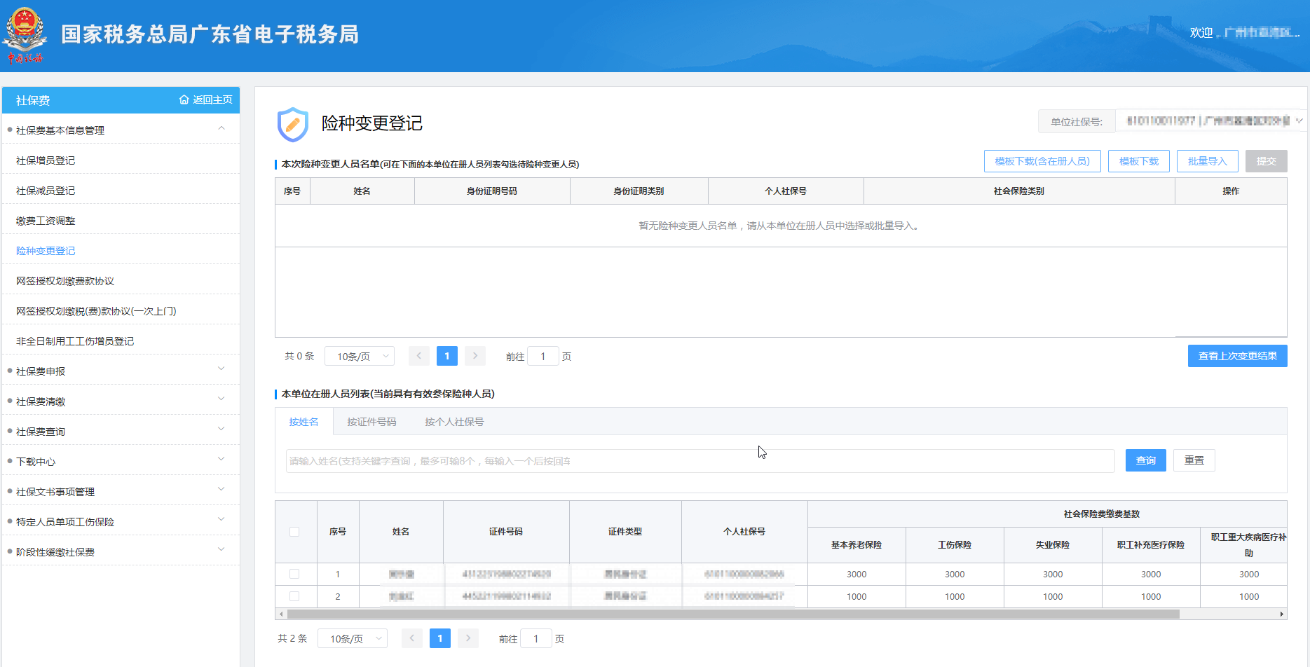 適用于用人單位對(duì)已參保人員進(jìn)行參保險(xiǎn)種變更。