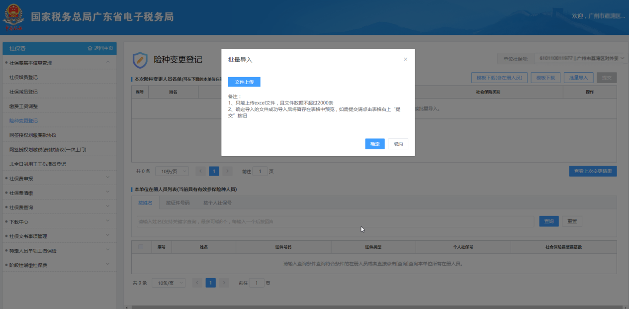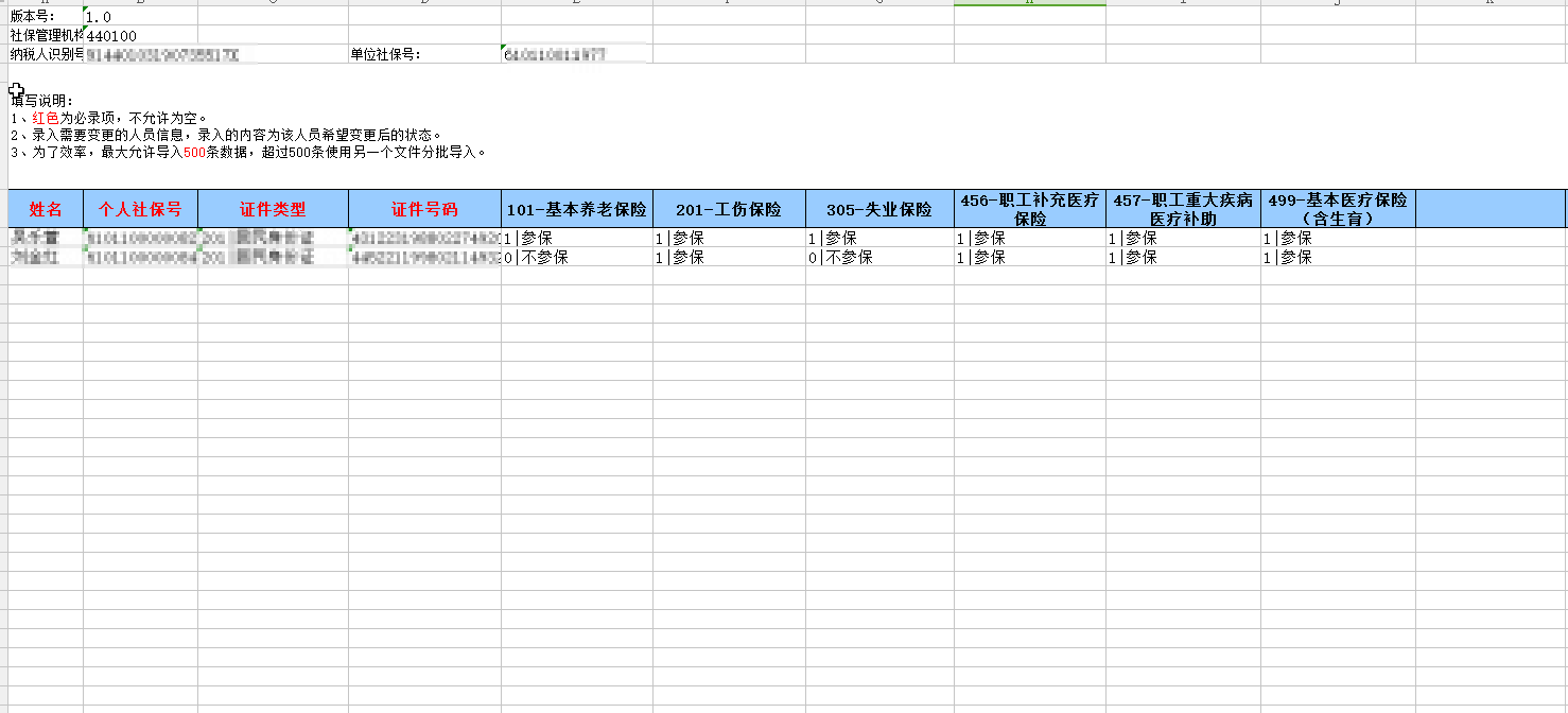 注:?jiǎn)未闻繉?dǎo)入的險(xiǎn)種變更文件,人數(shù)不可超過(guò)二千人,若調(diào)整人數(shù)超過(guò)二千人,則需要分多次重復(fù)導(dǎo)入操作;