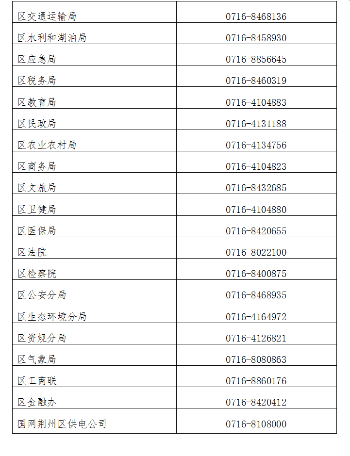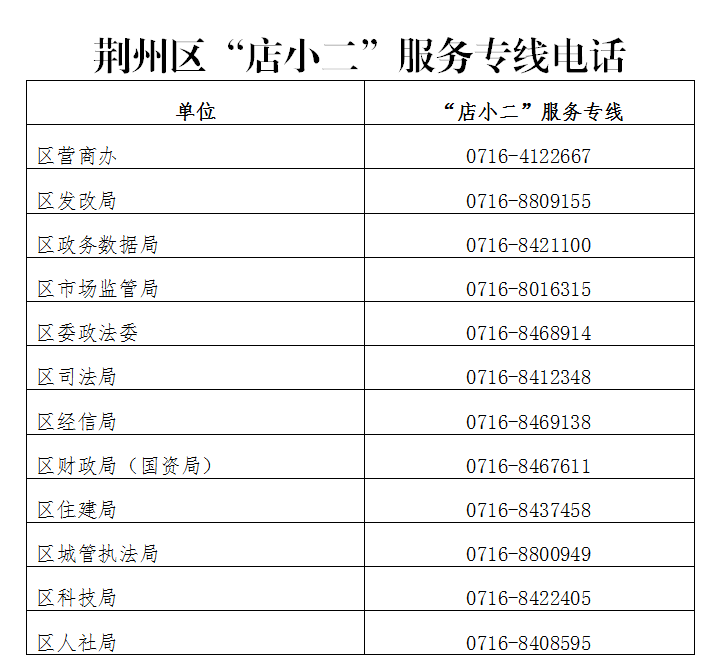 荊州市荊州區(qū)政府各單位“店小二”專線服務(wù)電話