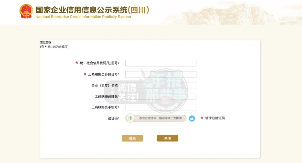 在登錄界面“工商聯(lián)絡員登錄”標簽下,選擇“獲取初始密碼”,填入相關(guān)企業(yè)信息后點擊“提交”,即可通過已備案的聯(lián)絡員手機號獲取相關(guān)登錄信息。