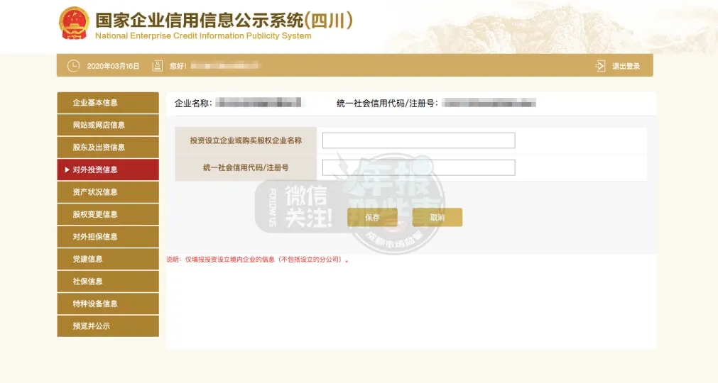 ? 填寫注意:對外投資信息僅指投資設立境內(nèi)企業(yè)的信息(不包括設立的分公司),請根據(jù)企業(yè)年度財務報告(截止12月31日)中的長期投資明細填寫。企業(yè)名稱請按其營業(yè)執(zhí)照上的信息準確填寫,不應填寫簡稱、別稱或曾用名。