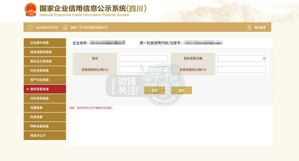 注意,此項是在“企業(yè)基本信息”中“是否發(fā)生股東股權(quán)轉(zhuǎn)讓”選項選擇“是”的情況下,才會顯示為可填寫狀態(tài)。