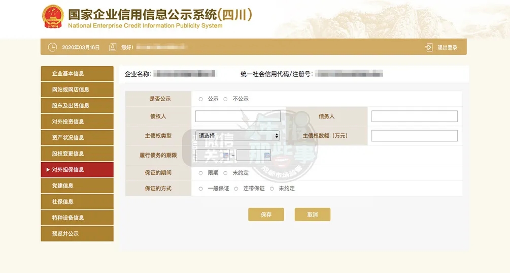 注意,此項是在“企業(yè)基本信息”中“是否有對外擔保”選項選擇“是”的情況下,才會顯示為可填寫狀態(tài)。