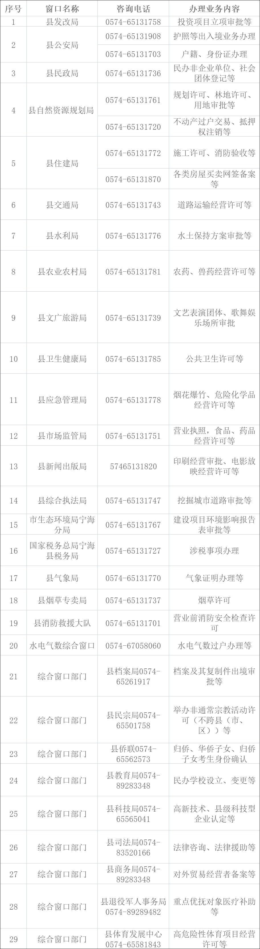 二、寧??h政務(wù)服務(wù)中心分中心咨詢預(yù)約電話