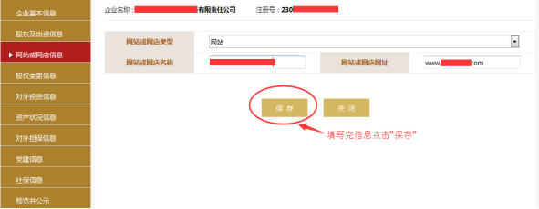 第九步:填寫“網站或網店信息”,可添加多條網站或網店信息,也可修改或刪除信息。若無網站或網店信息可以不填此項。