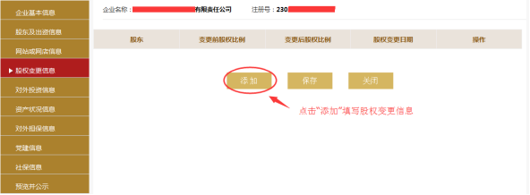 第十步:填寫“股權變更信息”,企業(yè)填報當年年度的股權變更情況即可。
