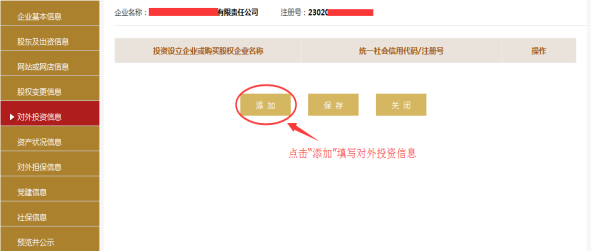 第十一步:填寫“對外投資信息”。若無對外投資,則該項無需填寫。