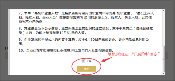 第六步:仔細閱讀填報須知,點擊“已閱”并“確定”。