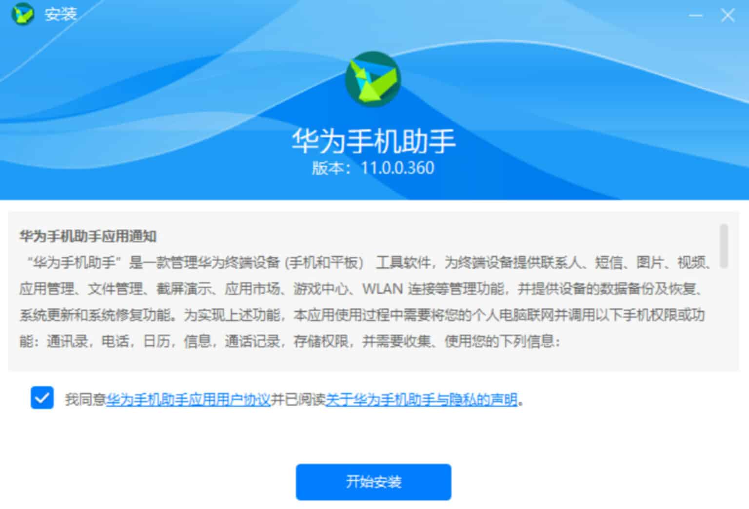 3-1.打開剛才下載的谷歌框架所需軟件包中的華為安裝谷歌電腦端操作文件夾,將里面的華為手機(jī)助手PC端安裝在電腦上,安裝完成后會(huì)提示軟件更新。注意:千萬(wàn)不要更新華為手機(jī)助手。
