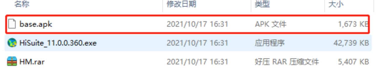3.3.把華為安裝谷歌電腦端操作文件夾中的 base.apk 安裝到你的手機(jī)上。這個(gè)文件是華為手機(jī)助手的手機(jī)端。