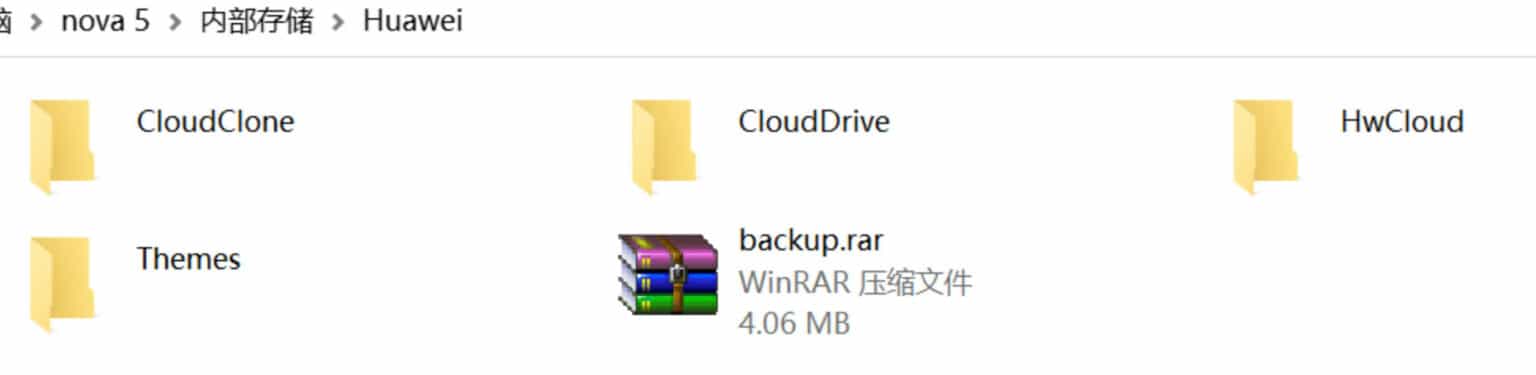 4.1. 打開谷歌助手備份文件的文件夾,將里面的 backup.rar 文件復(fù)制到手機(jī)的 huawei 文件夾內(nèi)。