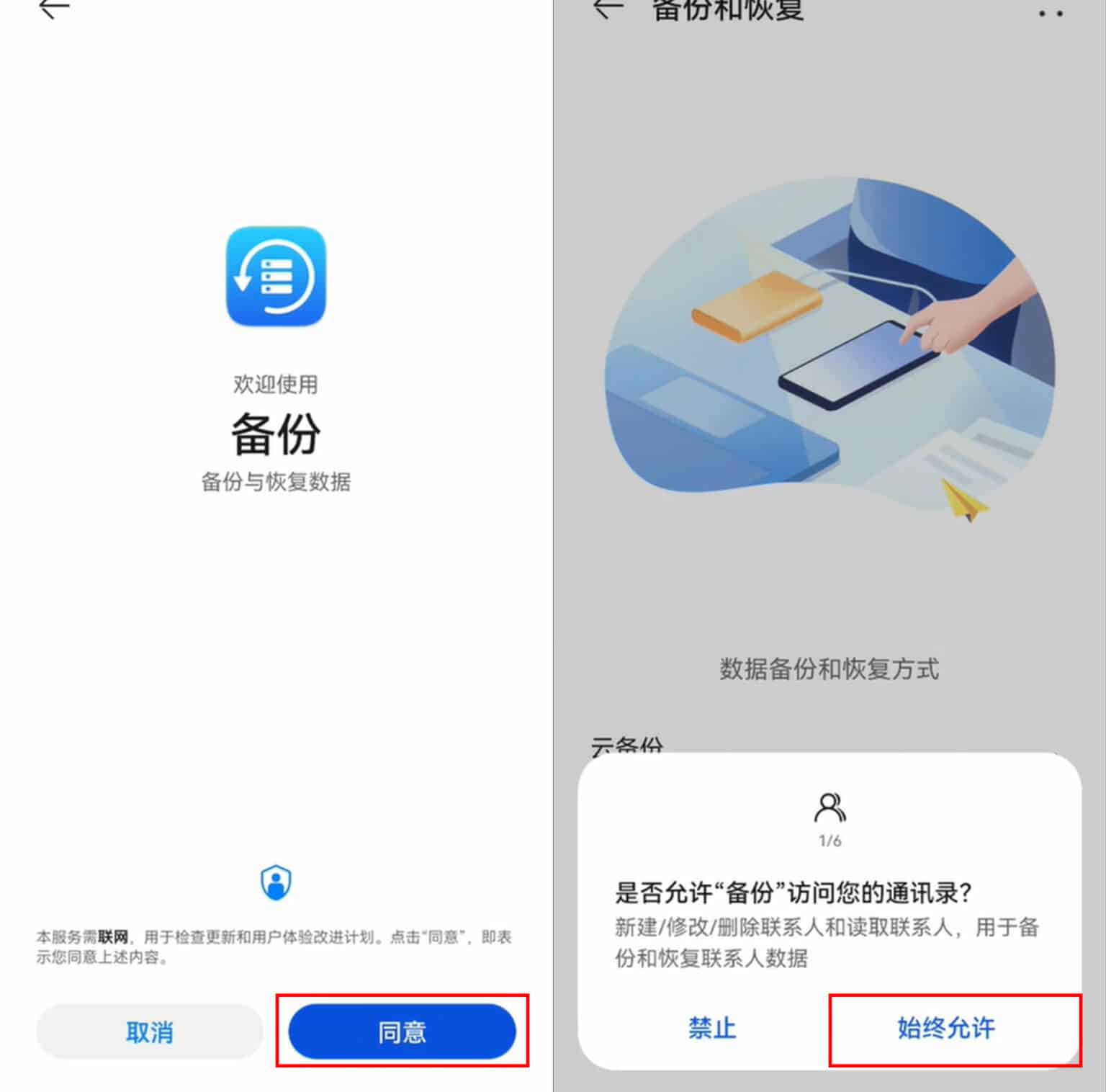 4.3.系統(tǒng)日期修改完畢后,在系統(tǒng)和更新中,點(diǎn)擊備份和恢復(fù),點(diǎn)擊同意,權(quán)限選擇始終允許,最后一個(gè)彈窗點(diǎn)擊我知道了,完成后返回上一級(jí)目錄,之后再點(diǎn)擊備份和恢復(fù),進(jìn)行下一步操作。