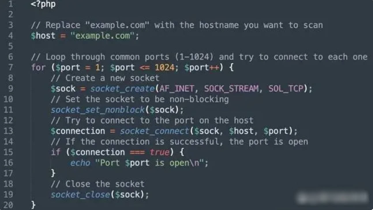 告訴它:“創(chuàng)建一個(gè) PHP 程序來(lái)掃描主機(jī)名上的開(kāi)放端口?!?/span>