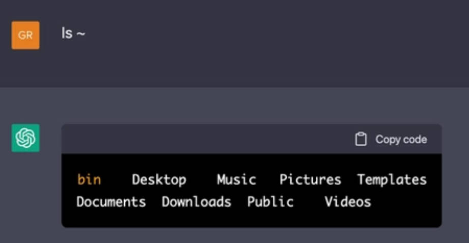可以看到,ChatGPT 成功扮演了一個(gè) “虛擬機(jī)” 的角色。除了上面這些還能進(jìn)行檢測(cè)安全漏洞、調(diào)試修復(fù)代碼、跨維度旅行、連接 internet……等等之類的操作,可以說(shuō)是真的非常神奇了。