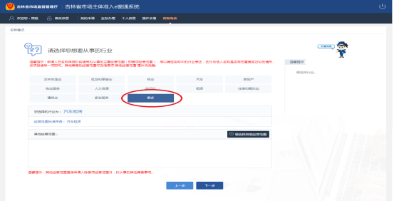 點擊“公司”圖標,點擊下一步提交操作。系統(tǒng)跳轉(zhuǎn)到行業(yè)選擇頁面。