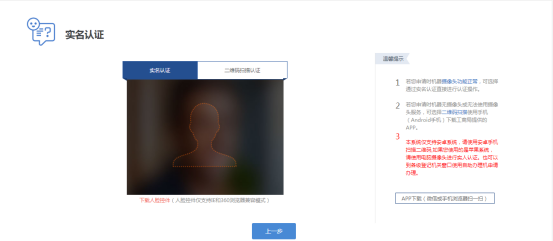 點擊“下一步”,系統(tǒng)跳轉(zhuǎn)到實人驗證頁。