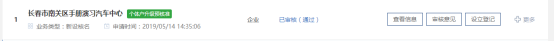 審核人員審核通過后,在我的申請里面查看本條企業(yè)信息是已審核(通過),如下圖: