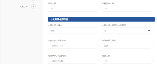 財務(wù)負責(zé)人信息填寫后,點擊下一步,跳轉(zhuǎn)到其他信息采集頁面,如下圖: