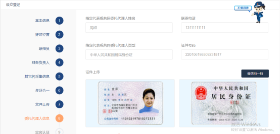 點擊“下一步”,填寫委托代理人信息,如下圖: