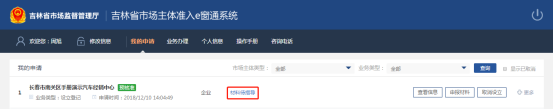 企業(yè)名稱申請成功后,用戶可以在“我的申請“菜單里查看到該企業(yè)的申請信息、審核意見、業(yè)務(wù)辦理狀態(tài)等相關(guān)業(yè)務(wù)信息。如下圖: