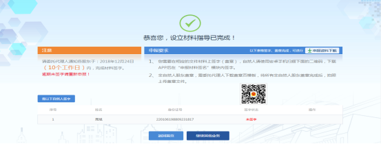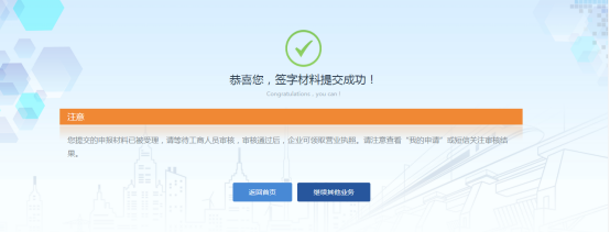 點擊“簽字確認”按鈕,系統(tǒng)流轉(zhuǎn)到“恭喜您,您提交的注銷申請已完成!”頁面,如下圖: