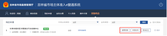 點擊“查看信息”,查看企業(yè)申請信息。如圖: