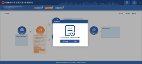 4、 選擇前置審批事項(xiàng)后,點(diǎn)擊“提交”,等待市監(jiān)人員審核。選擇“否”,跳轉(zhuǎn)到注銷原因選擇頁面,如圖: