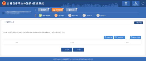 3、 填寫信息,點(diǎn)擊【下一步】,跳轉(zhuǎn)到申請(qǐng)材料上傳頁面,如圖: