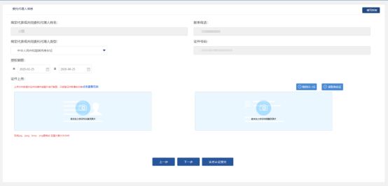 5、 填寫信息,上傳身份證照片,點(diǎn)擊【下一步】,跳轉(zhuǎn)到實(shí)人認(rèn)證頁面,如圖: