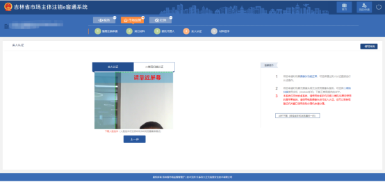 8、 上傳全體投資人承諾書,點(diǎn)擊“下一步”,進(jìn)入實(shí)人認(rèn)證頁面,如圖: