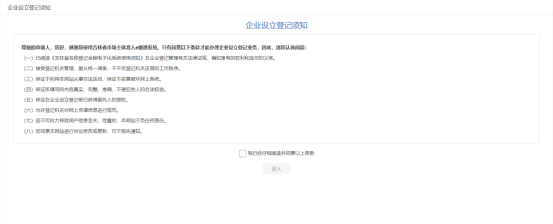1) 點擊“設(shè)立登記”,進入企業(yè)設(shè)立登記須知頁面,如下圖。