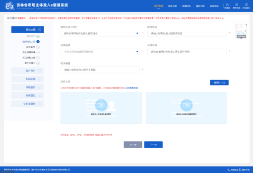 12) 選擇“財務(wù)負(fù)責(zé)人姓名”,輸入聯(lián)系電話,選擇“證件類型”,輸入“證件號碼”,“證件上傳”,以上都和之前步驟相同,不做舉例