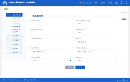 14) 完善非公黨建信息,點擊【下一步】按鈕,如下圖。