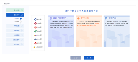17) 點擊【下一步】按鈕,進入銀行開戶頁面如下圖