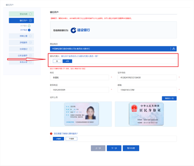 10) 選擇“聯(lián)絡(luò)員姓名”,輸入聯(lián)系電話,選擇“證件類型”,輸入“證件號碼”,“證件上傳”,以上都和之前步驟相同,不做舉例。