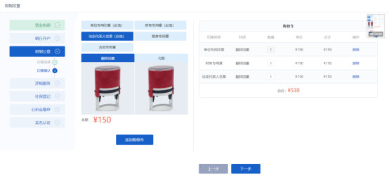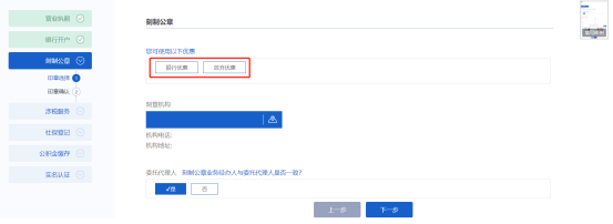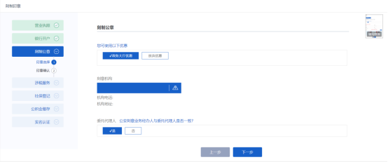 22) 上傳委托人信息后點擊“下一步”進入刻制公章頁面如下圖: