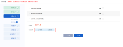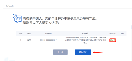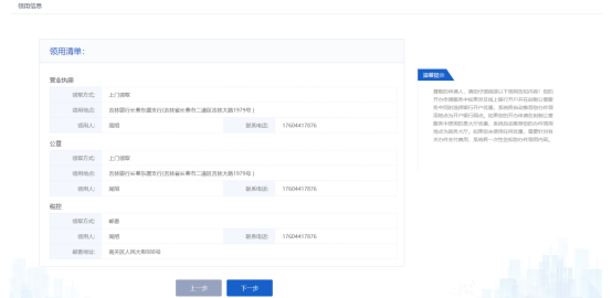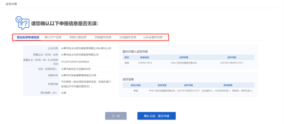 36) 企業(yè)根據(jù)回顯的領(lǐng)用清單到相對應(yīng)的部門領(lǐng)取開辦的辦件,點擊下一步進入申報信息確認(rèn)頁,如下圖: